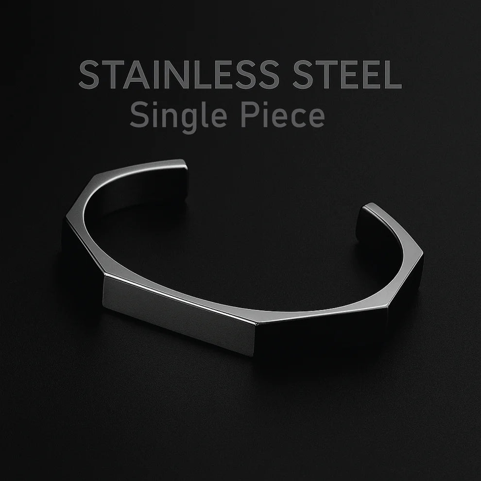 Made from premium stainless steel (no color fading) Heavyweight feel for a bold, masculine presence Hexagonal design with sharp edges for a modern, unique look Slightly adjustable open cuff for comfort and perfect fit Polished mirror finish for a sleek, luxury shine Designed for everyday durability & style